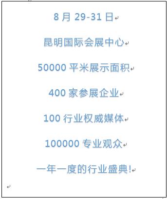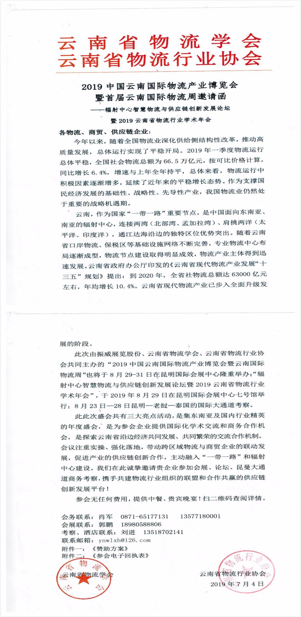 由中國國際商會云南商會、振威展覽股份、云南省物流學(xué)會、云南省物流行業(yè)協(xié)會聯(lián)合主辦,云南省維修行業(yè)協(xié)會商用車分會協(xié)辦,昆明市發(fā)展和改革委員會、昆明市工業(yè)和信息化局、昆明市商務(wù)局、昆明市交通運(yùn)輸局、昆明市科學(xué)技術(shù)局、昆明市城市管理局、昆明市環(huán)保局 云南機(jī)場集團(tuán)有限責(zé)任公司、云南路橋股份有限公司、云南省電力行業(yè)協(xié)會支持,成都振威世展展覽有限公司承辦的2019云南國際物流產(chǎn)業(yè)博覽會暨云南省國際物流周將于8月29日在昆明國際會展中心盛大召開!