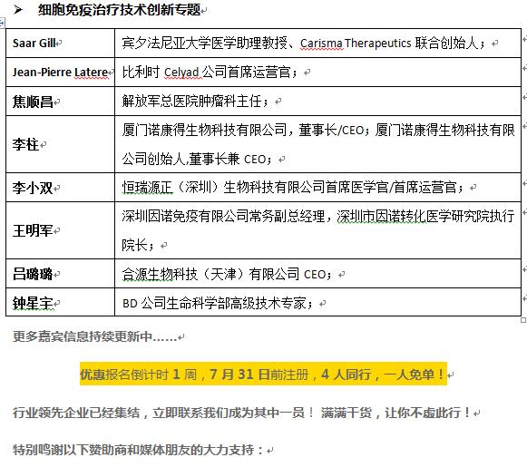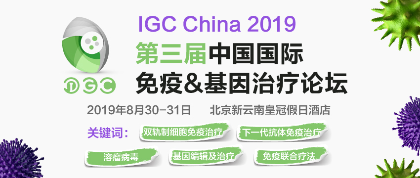 2019年8月30-31日,由中國(guó)生物工程學(xué)會(huì)與商圖信息聯(lián)合主辦,美國(guó)華人生物制藥科技協(xié)會(huì)(CBA特別支持,一年一度的IGC China 2019第三屆中國(guó)國(guó)際免疫&基因治療論壇將于北京新云南皇冠假日酒店隆重召開!)