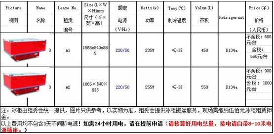 【溫馨提示】請將冰柜租賃申請表及租賃冰柜費用憑證,務必在8月25日前發(fā)郵件至組委會處;