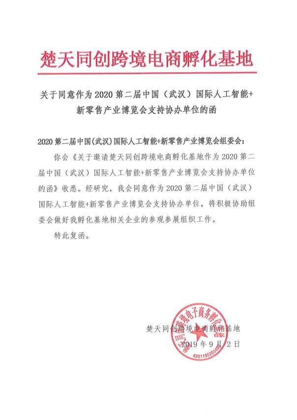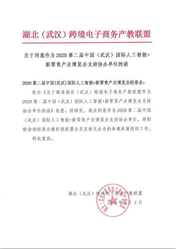 組委會消息,湖北省楚商聯(lián)合會跨境電商分會、湖北(武漢)跨境電子商務(wù)產(chǎn)教聯(lián)盟和楚天同創(chuàng)跨境電子商務(wù)孵化基地接受邀請,支持協(xié)辦2020第2屆中國(武漢)國際人工智能+新零售產(chǎn)業(yè)博覽會(簡稱:武漢AI新零售展)。三大行業(yè)機構(gòu)將積極協(xié)助組委會做好協(xié)會會員及相關(guān)企業(yè)的參觀參展組織工作,共同搭建采購交流平臺,推動行業(yè)健康發(fā)展!
