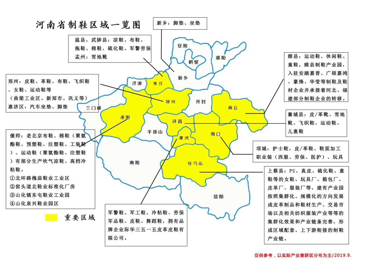 近幾年來(lái),鄭州國(guó)際皮革鞋機(jī)鞋材展主辦方走進(jìn)每一個(gè)制鞋集群區(qū),深入了解行業(yè)發(fā)展,關(guān)注行業(yè)變化及需求。本次小伙伴們探尋了“許昌市、焦作市以及鄭州市”有承接轉(zhuǎn)移新鮮血液的注入,有產(chǎn)業(yè)化的升級(jí)變化,有集群區(qū)的不斷擴(kuò)充等。