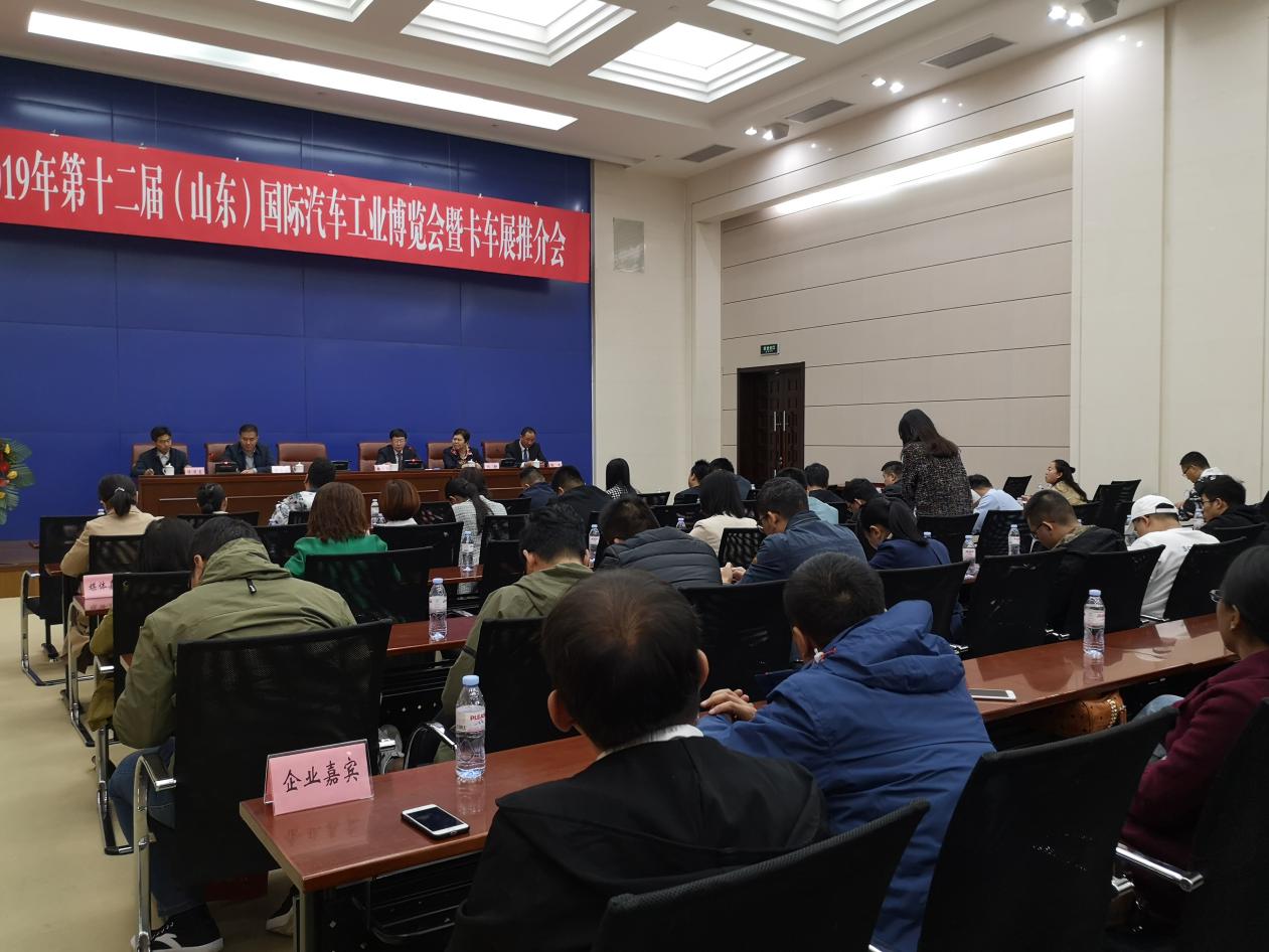 10月15日,2019第十二屆(山東)國際汽車工業(yè)博覽會暨卡車展推介會在濟(jì)南龍奧大廈舉行,會議由濟(jì)南市貿(mào)促會會長翟旭東主持,濟(jì)南市政府副秘書長楊永斌、山東省市汽車行業(yè)協(xié)會常務(wù)副會長魏學(xué)勤、濟(jì)南市商務(wù)局副局長王志剛、濟(jì)南市貿(mào)促會巡視員張靜應(yīng)邀出席,濟(jì)南市會展辦、山東國際會展中心等省市相關(guān)部門領(lǐng)導(dǎo)也參加本次推介會。全國主要汽車生產(chǎn)和銷售企業(yè)代表、省市媒體記者近100人,見證了本次推介會的舉行。