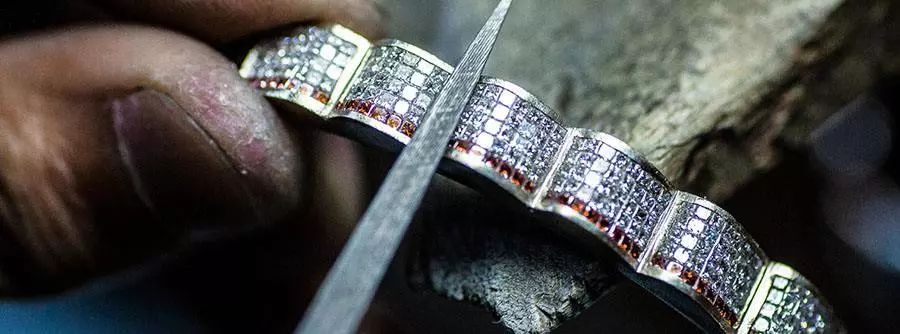 如今,番禺已經(jīng)成為世界重要的珠寶產(chǎn)業(yè)集聚地之一,全國規(guī)模最大的外貿(mào)珠寶首飾加工基地,擁有沙灣珠寶產(chǎn)業(yè)園、市橋珠寶工業(yè)區(qū)、大羅塘工業(yè)區(qū)、小平工業(yè)區(qū)、聯(lián)邦工業(yè)區(qū)等多個(gè)工業(yè)區(qū)在內(nèi)的番禺珠寶加工集群和生產(chǎn)基地,有近400家珠寶首飾加工企業(yè),2000多家銷售經(jīng)營企業(yè),匯聚了APM、KGK、Elsa Lee、億鉆珠寶、云寶號(hào)、瑞寶珠寶、RNP等多個(gè)國際品牌,7萬名從業(yè)人員,800多名珠寶設(shè)計(jì)師,涵蓋珠寶加工、首飾鑲嵌、鉆石加工、彩寶設(shè)計(jì)、配套服務(wù)等諸多領(lǐng)域。