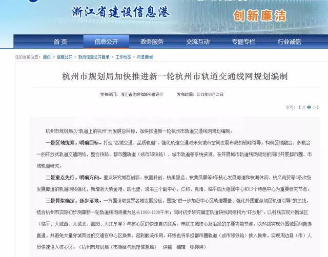 2018年8月21日,浙江省住房和城鄉(xiāng)建設(shè)廳官網(wǎng)上發(fā)布了一則和杭州軌道交通有關(guān)的信息——杭州市以“軌道上的杭州”為發(fā)展總目標(biāo),杭州市規(guī)劃局正在加快推進(jìn)新一輪杭州市軌道交通線網(wǎng)規(guī)劃編制。