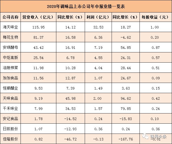 2020年上半年,12家調味品上市公司的營業(yè)收入總額為320億元,凈利潤總和為61億元。