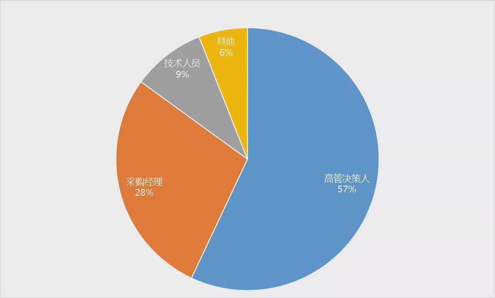 在本屆具有商業(yè)價(jià)值的專(zhuān)業(yè)觀眾共計(jì)49012人次,其中占比較多的高管決策人,達(dá)到57%;其次,采購(gòu)經(jīng)理占比28%、技術(shù)人員占比9%,其它占比6%。