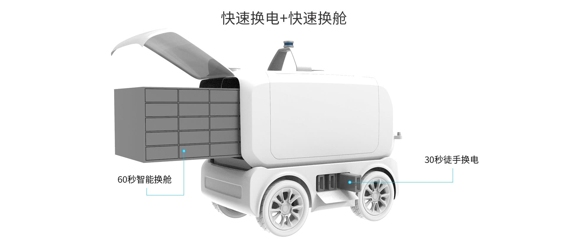 迅哥首款商用低速無人車搭配不同箱體,可以有不同用途,包括無人物流、無人配送、無人售賣、無人消殺、無人安防等。