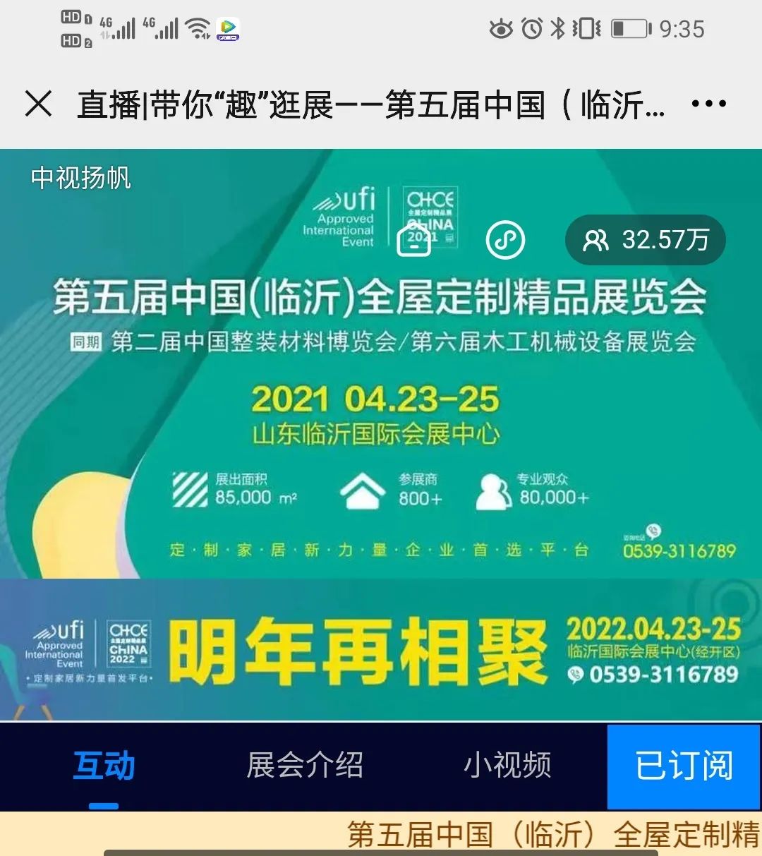 線上線下同步展示,展會期間還通過全網多媒體直播的形式全程同步直播展會盛況,斬獲全網播放量32.57萬,還有我們的視頻號“趣逛展”和臨沂交通旅游廣播,讓不能到現(xiàn)場的采購商通過手機屏幕了解展會及企業(yè)產品,與展會現(xiàn)場實現(xiàn)互動溝通。觀眾們通過展會線上云展廳高效觀展,進一步拓展了博覽會交流渠道與市場空間,促進了平臺經濟、共享經濟健康發(fā)展,打造了專業(yè)定制家居行業(yè)交流平臺。