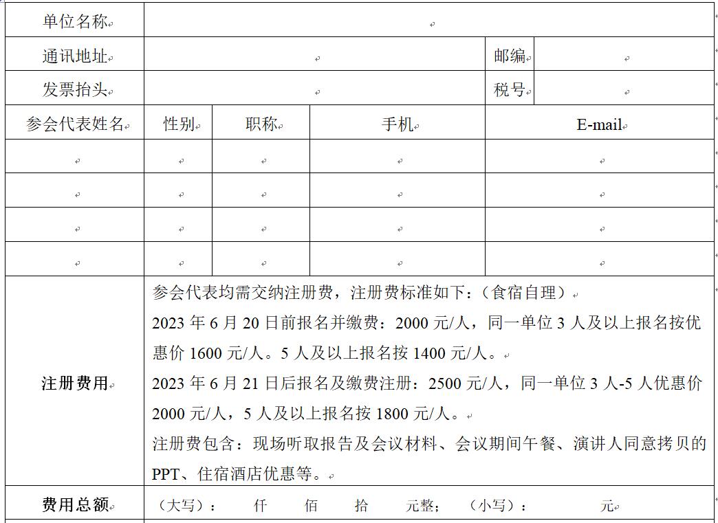 2023年6月20日前報名并繳費:2000元/人,同一單位3人及以上報名按優(yōu)惠價1600元/人。5人及以上報名按1400元/人。