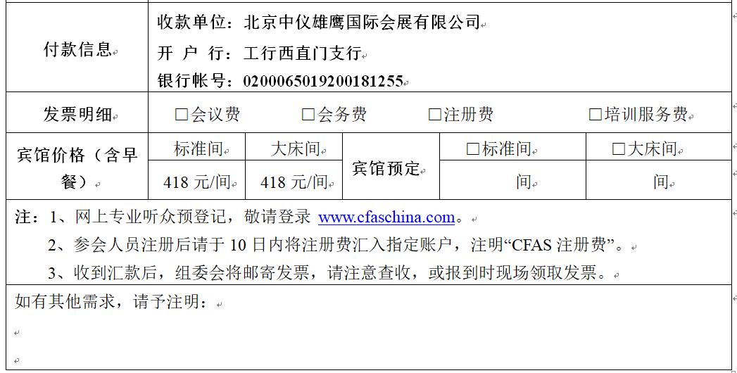 請詳細填寫以下“回執(zhí)注冊表”,傳真或者郵件回傳,郵箱:cfas@lanneret.com.cn或280251967@qq.com 傳真:010-82967471 聯(lián)系人:于健 13439755593