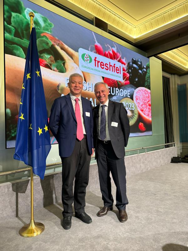 5月25日,中國(guó)出入境檢驗(yàn)檢疫協(xié)會(huì)副會(huì)長(zhǎng)兼秘書長(zhǎng)段小紅受邀,帶領(lǐng)代表團(tuán)赴比利時(shí)布魯塞爾參加歐洲鮮果協(xié)會(huì)年會(huì)。并在現(xiàn)場(chǎng)向歐洲鮮果協(xié)會(huì)發(fā)出邀請(qǐng),希望歐洲鮮果協(xié)會(huì)及其會(huì)員參加2023廣州進(jìn)出口果蔬大會(huì)及展覽會(huì),促進(jìn)中歐果蔬貿(mào)易發(fā)展,讓中國(guó)和歐洲的消費(fèi)者能夠買到更多優(yōu)質(zhì)的果蔬產(chǎn)品。