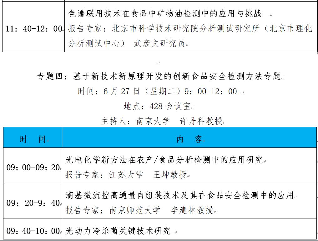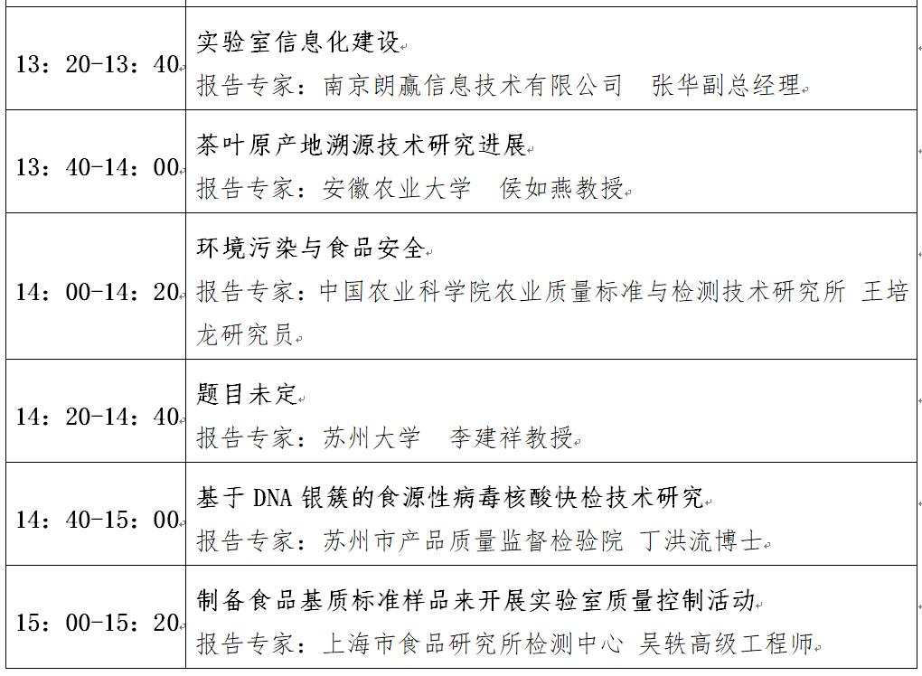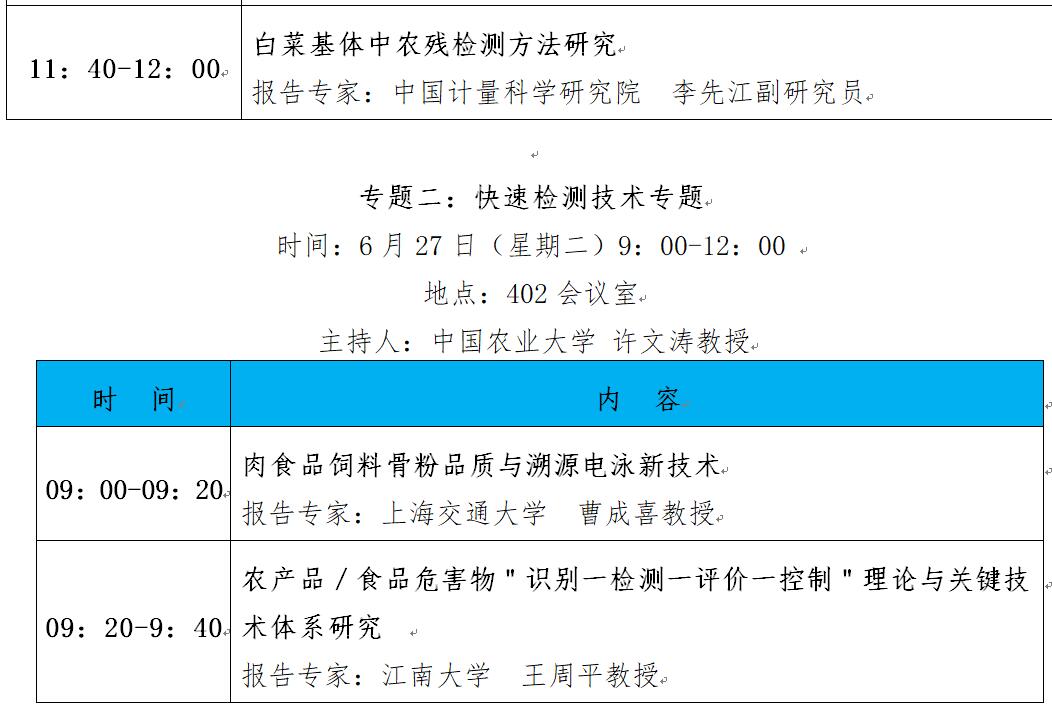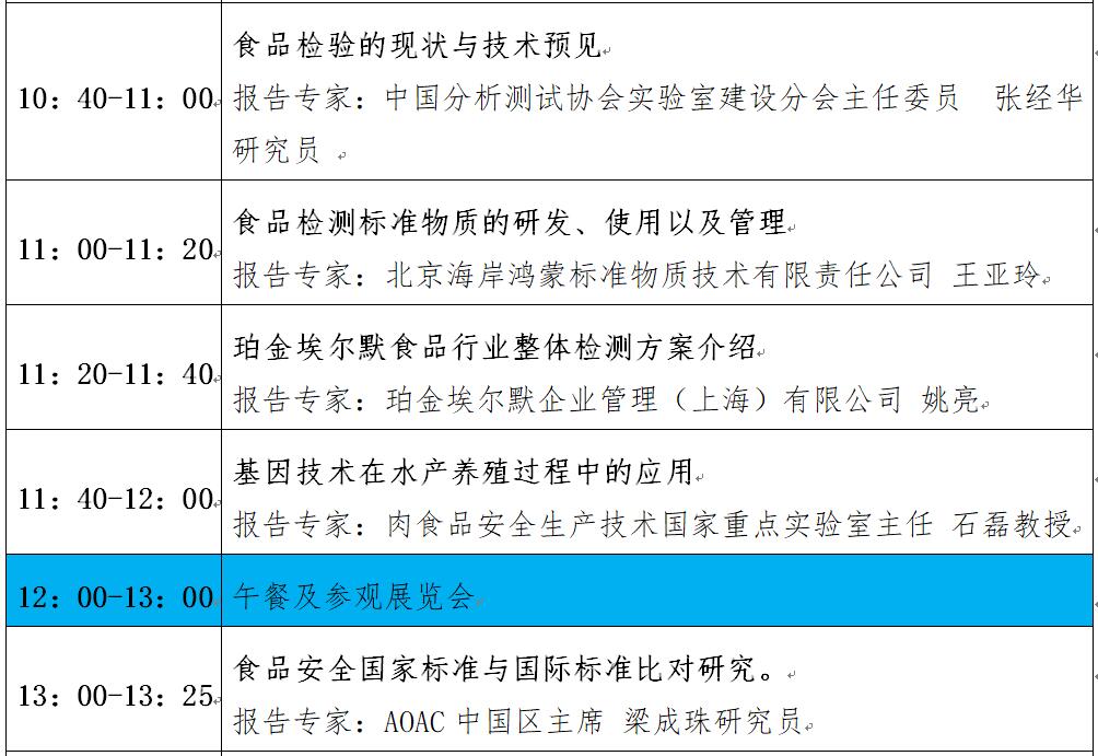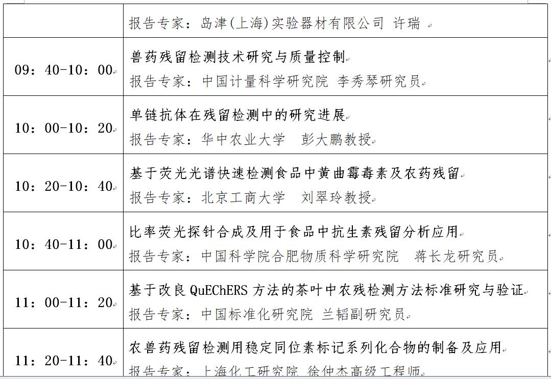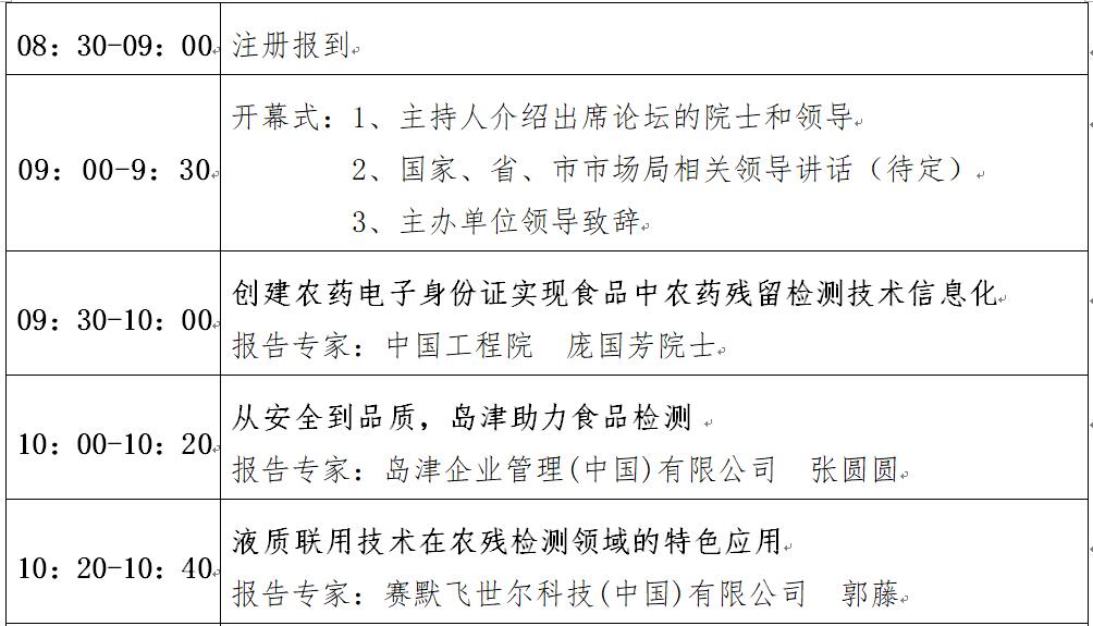 “第十二屆中國(guó)食品與農(nóng)產(chǎn)品安全檢測(cè)技術(shù)與質(zhì)量控制國(guó)際論壇”大會(huì)日程表