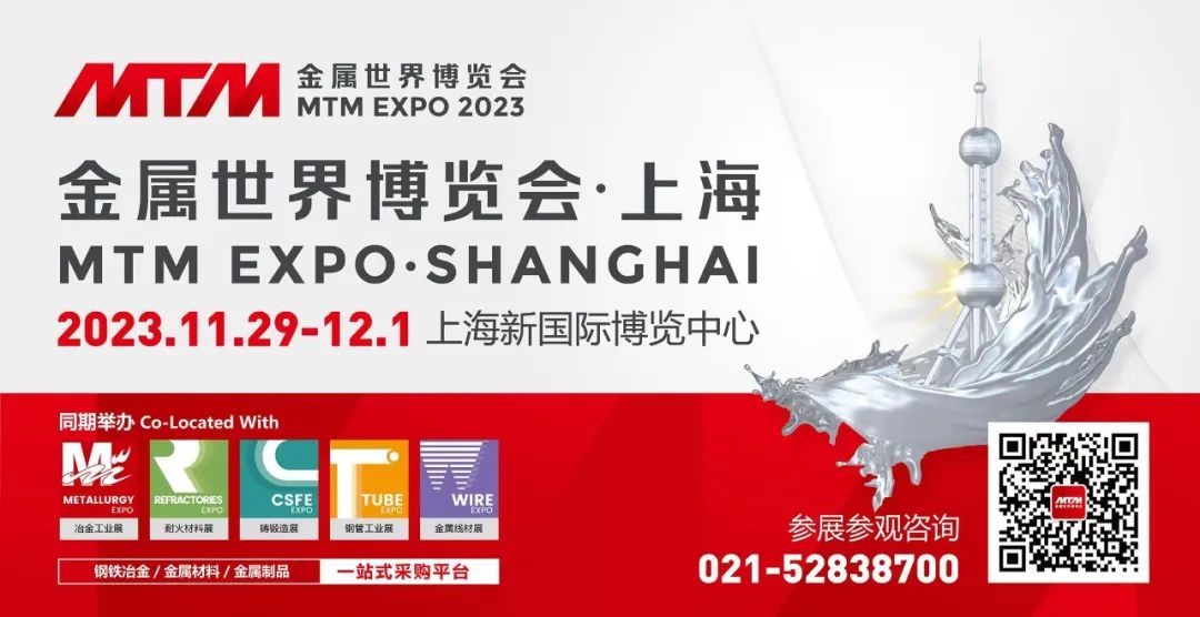 時隔兩年,鋼鐵冶金行業(yè)盛會 ——2023MTM金屬世界博覽會回歸上海,將于11月29日至12月1日在上海新國際博覽中心隆重召開。