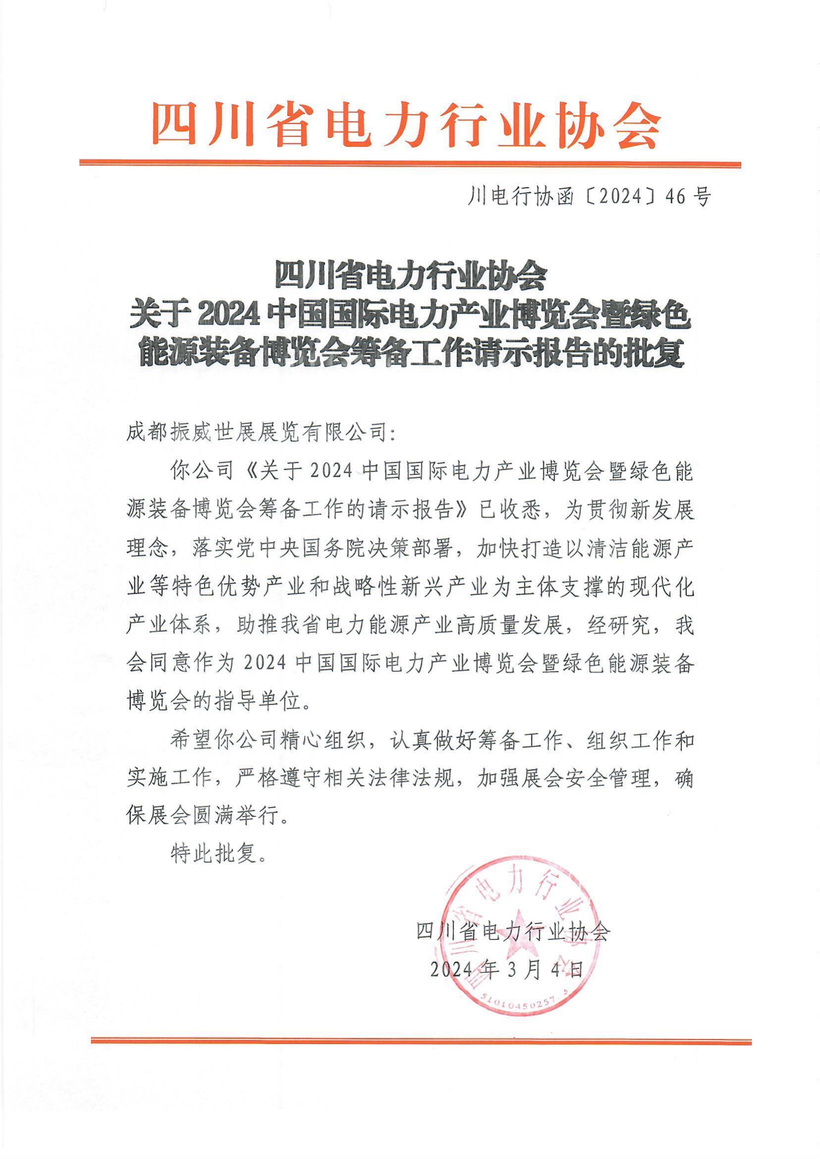 4月1日,中國國際貿(mào)易促進委員會電力行業(yè)委員會正式復(fù)函,同意作為2024中國國際電力產(chǎn)業(yè)博覽會暨綠色能源裝備博覽會的聯(lián)合主辦單位,將積極組織會員及相關(guān)單位參展、參觀,與成都振威世展展覽有限公司共同打造世界領(lǐng)先的電力能源行業(yè)“風(fēng)向標(biāo)”交流合作平臺。