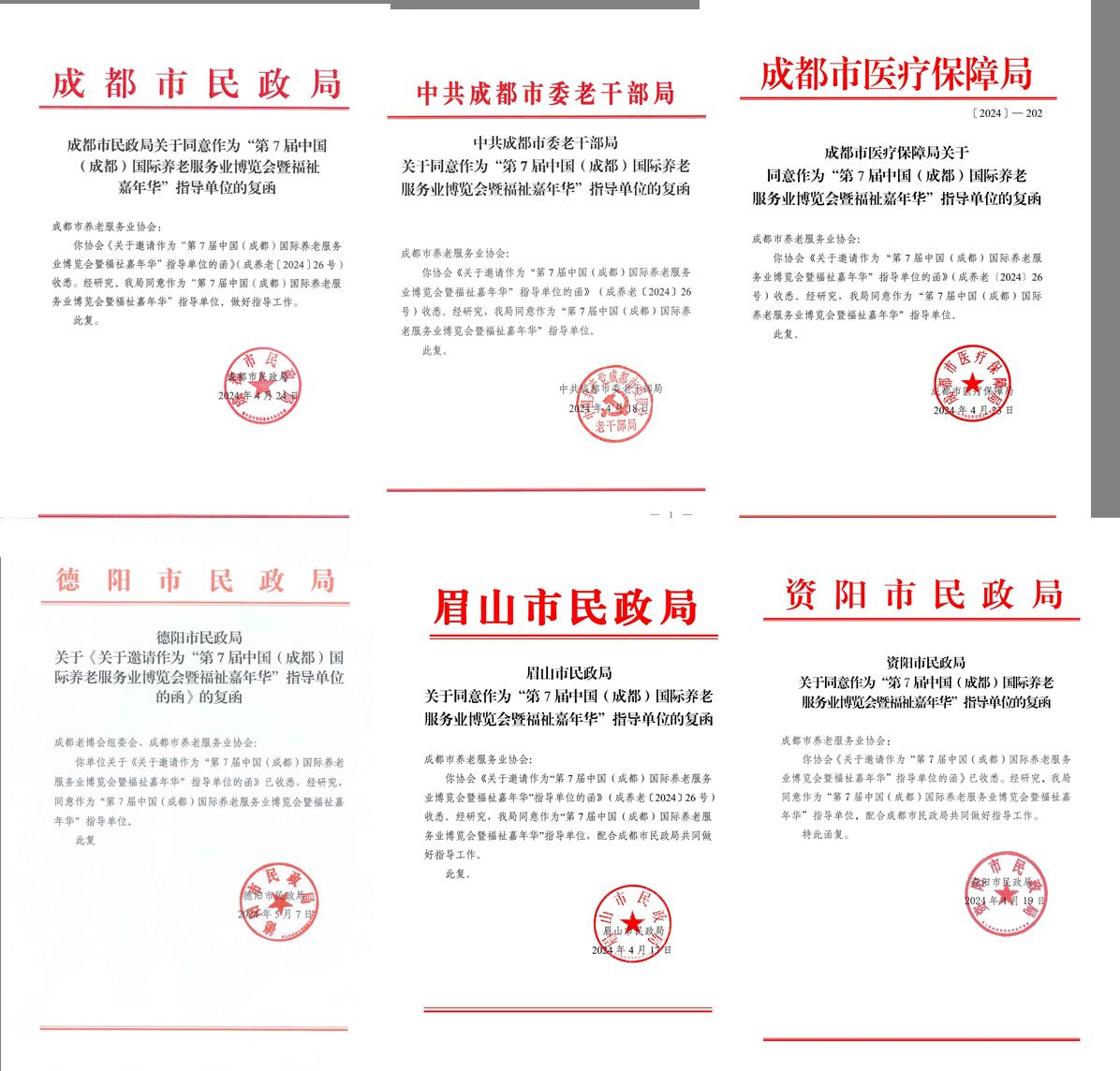 本屆博覽會(huì)得到了政府單位及行業(yè)協(xié)會(huì)的大力支持,擬在中國社會(huì)福利與養(yǎng)老服務(wù)協(xié)會(huì)、成都市民政局、中共成都市委老干部局、成都市衛(wèi)健委、成都市博覽局、成都市醫(yī)療保障局、成都市殘疾人聯(lián)合會(huì)、德陽、眉山、資陽民政局等單位的指導(dǎo)下,由成都市養(yǎng)老服務(wù)業(yè)協(xié)會(huì)、四川省一帶一路經(jīng)貿(mào)合作促進(jìn)會(huì)、成都世紀(jì)康博會(huì)展有限公司、全國老齡辦國家老齡研究基地(西南交通大學(xué))等單位聯(lián)合主辦。