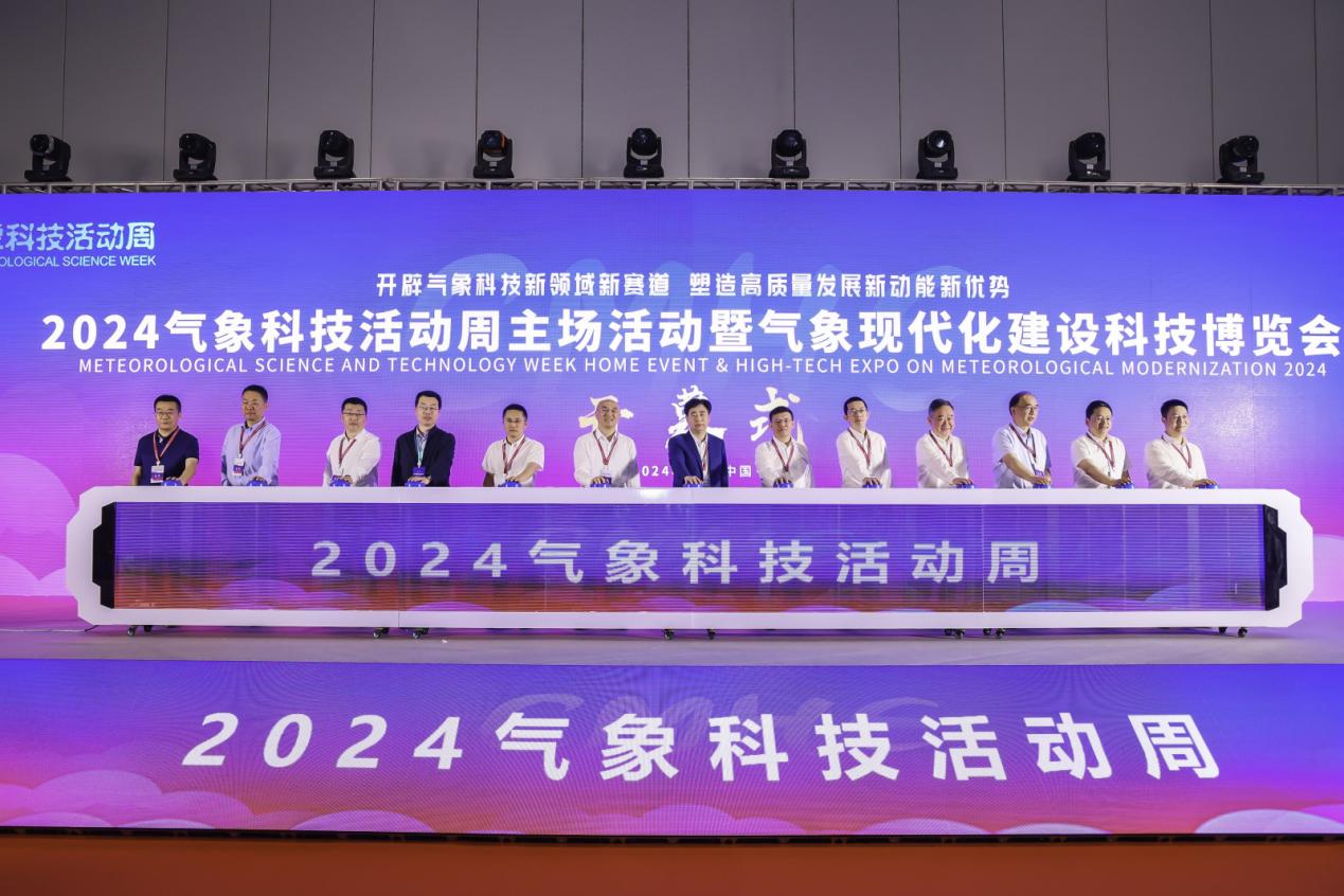 隨后,與會(huì)嘉賓代表上臺(tái)啟動(dòng)按鈕,共同宣布2024氣象科技活動(dòng)周正式啟動(dòng),2024氣象現(xiàn)代化建設(shè)科技博覽會(huì)盛大開(kāi)幕!