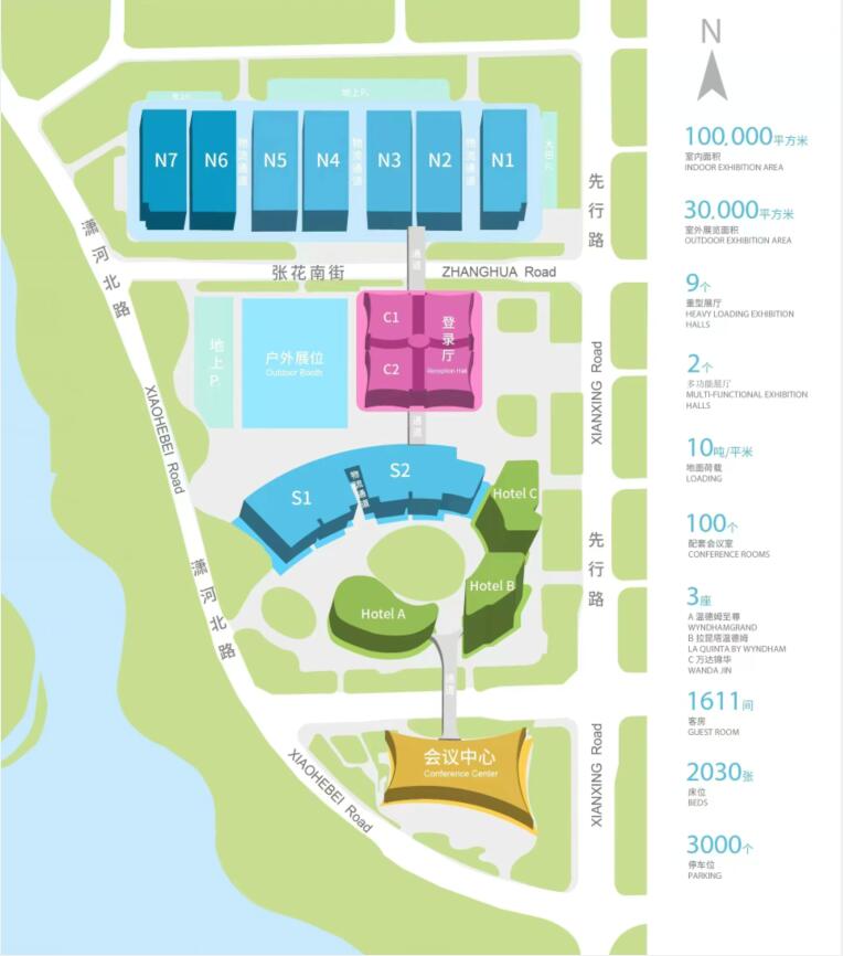 瀟河國際會展中心占地約766.3畝,總建筑面積為28.1萬平方米,由北展、中展、南展組成,共計11個室內(nèi)展廳。建成運營后的會展中心,不僅是瀟河新城地標(biāo)性建筑之一,還將成為省內(nèi)首個可承接國際化、高端化、專業(yè)化大型會展的國際性專業(yè)展館。2022年11月1日,歷經(jīng)1年零9個月的建設(shè),瀟河國際會議會展中心開門迎客,正式開始試運營。 [2] 2023年01月01日,瀟河國際會議會展中心及配套酒店群開業(yè)。山西·瀟河新城位于山西綜改示范區(qū)瀟河產(chǎn)業(yè)園區(qū)太原起步區(qū)核心位置,距太原武宿國際機場、太原南站約30公里,太原古縣城及晉祠約25公里,總占地面積9.29平方公…