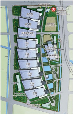 總體規(guī)劃:八座單層展館、一座多功能廳,6000個(gè)國際標(biāo)準(zhǔn)展位,30000平方米室外展場(chǎng)。